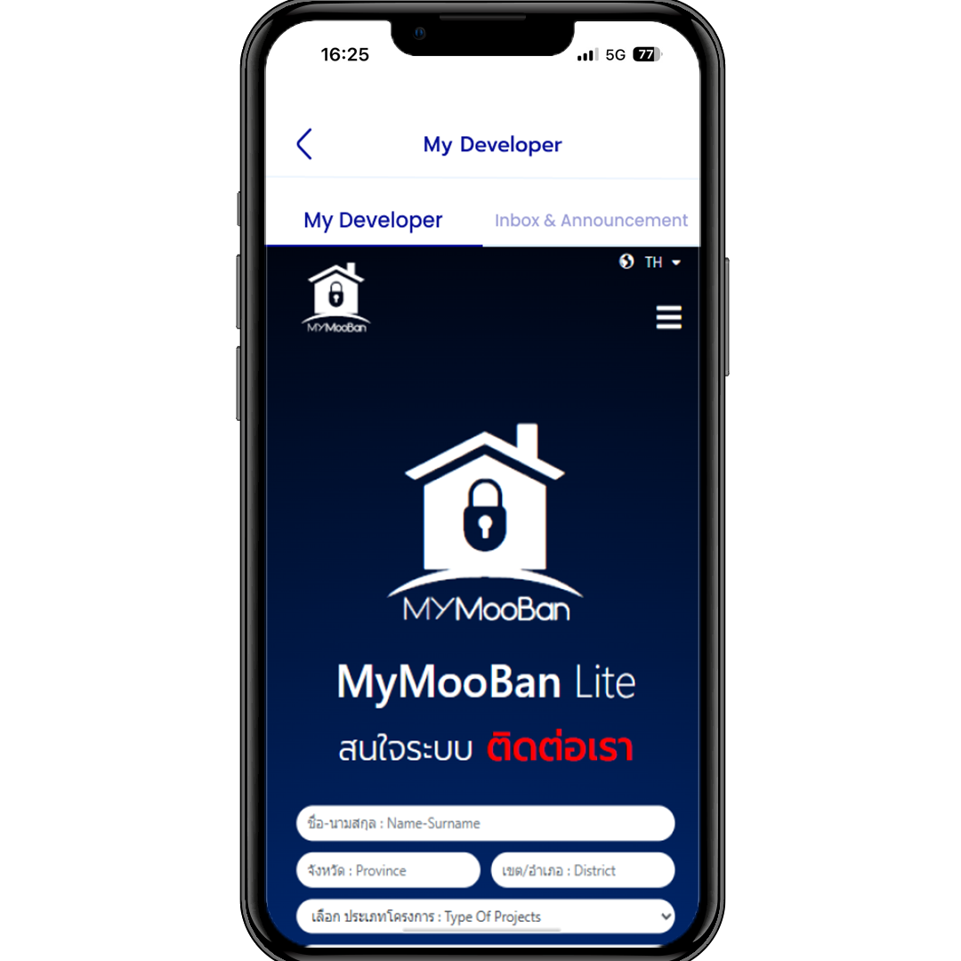 แอปสำหรับผู้อยู่อาศัยที่ช่วยอำนวยความสะดวกในการใช้ชีวิตประจำวันภายในโครงการ เช่น การแจ้งซ่อม ติดตามข่าวสาร ชำระเงิน และเข้าถึงบริการต่าง ๆ ได้อย่างง่ายดายในที่เดียว