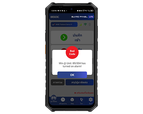 ลูกบ้านสามารถแจ้งเหตุฉุกเฉินมายังเครื่องบันทึกผู้มาติดต่อ